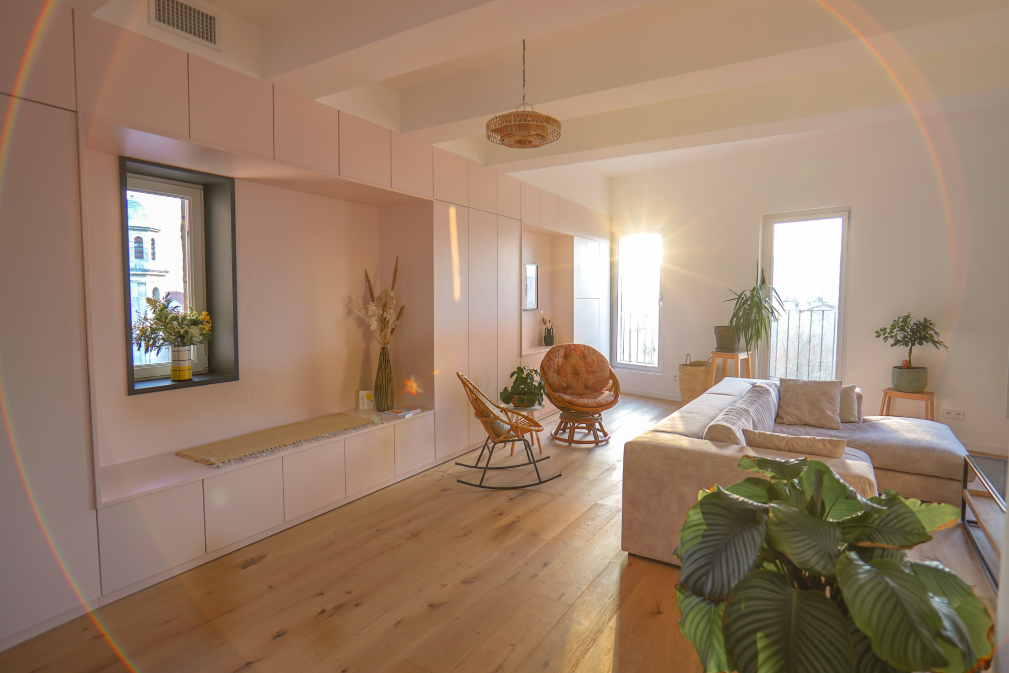Démolition, réagencement, électricité, plomberie, menuiseries sur-mesure… Berkail a sorti les grands moyens pour donner une seconde peau à ce bel appartement du centre-ville.